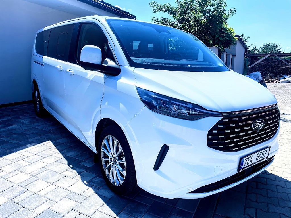 Ford Tourneo Custom L2 - 2.0 EcoBlue 125 kW, 4x4 AWD, r.v. 7/2024, naj. 10800 km, automat, 8 míst k sezení, velká nadstandartní výbava – programovatelné nezávislé teplovodní topení vč. zdvojené AGM baterie, sada Technology Plus, vyhřívaný volant, třízonová automatická klimatizace, tažné zařízení, elektricky nastavitelná vyhřívaná ergonomická sedadla Ford s certifikací AGR pro zdravá záda, světlý vinyl, zásuvka 230 V, bezdrátové dobíjení mobilního telefonu, kola z lehkých slitin 19“, palivová nádrž 70l, 3x dvojité USB vstupy, adaptivní tempomat, rozpoznávání značek, Pre Collision assist, ……